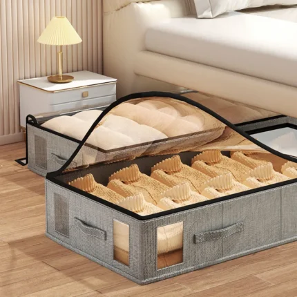 Caixa de armazenamento de tecido dobrável com tampa, organizador sob a cama para roupas de cama, grande capacidade visível à prova de poeira e umidade